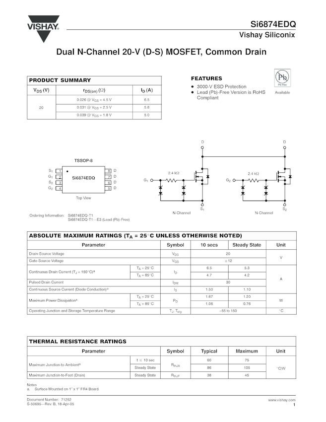 Common Drain Dual N-Channel 20-V (D-S) MOSFET