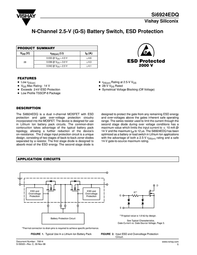 Dual N-Channel 2.5-V (G-S) MOSFET, Common Drain, ESD Protected