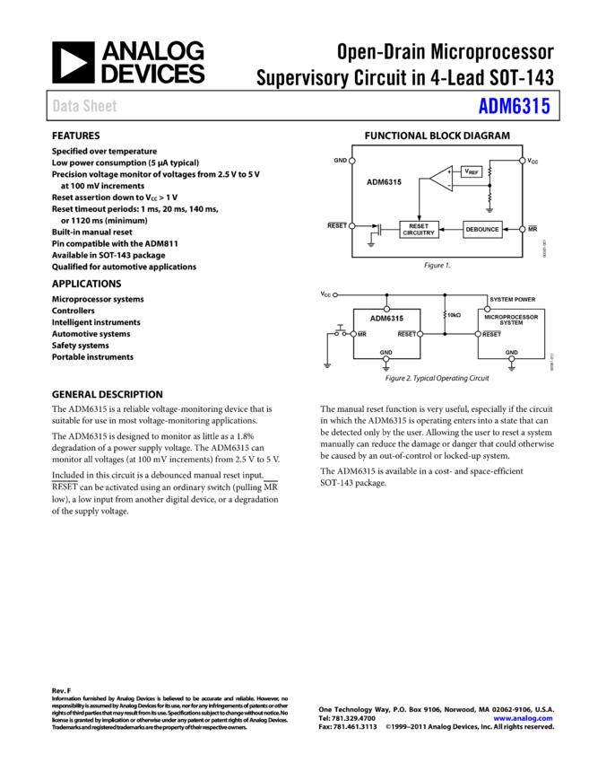 ADM6315: Open-Drain Microprocessor Supervisory Circuit in 4-Lead SOT-143