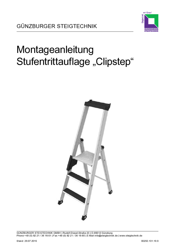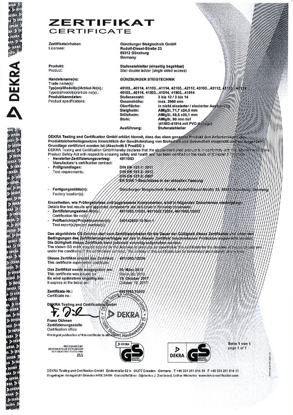 MUNK Günzburger Steigtechnik 41503 aluminium Drabina składana ze stopniem Maksymalna wysokość robocza: 2.75 m 5.8 kg