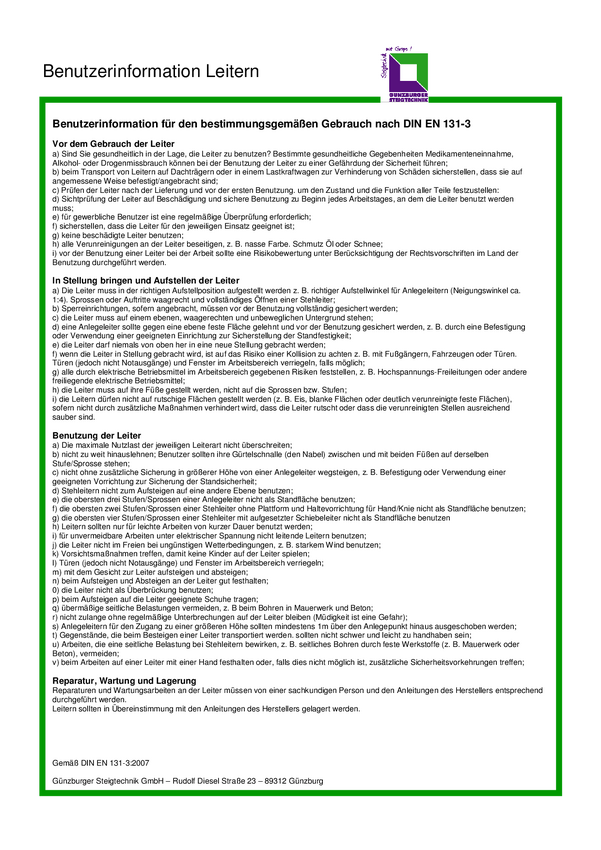 Drabina przedłużana MUNK Günzburger Steigtechnik 20308, Maksymalna wysokość robocza: 6.9 m