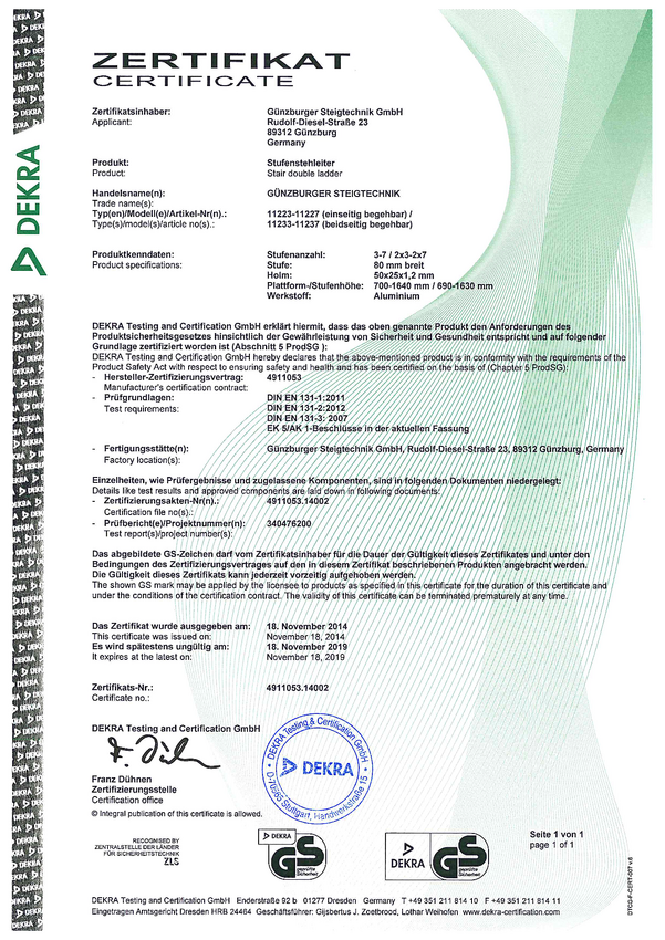 MUNK Günzburger Steigtechnik 11253 aluminium Drabina składana ze stopniem Maksymalna wysokość robocza: 2.75 m