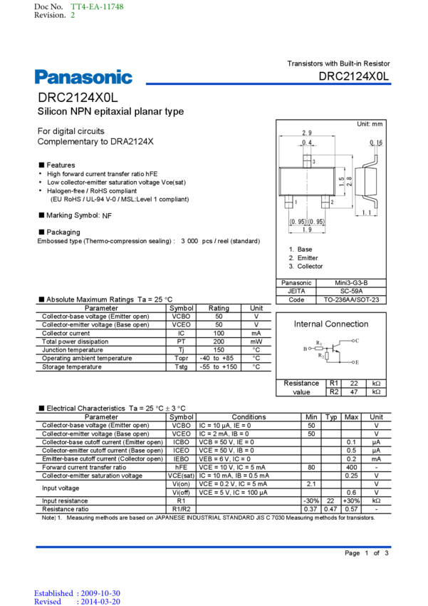 Transistor with Built-in Resistors (IC = 100 mA Series)
