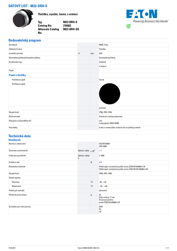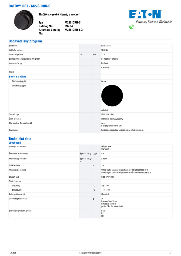 Eaton 216663 M22-DRH-S Przycisk pierścień przedni z tworzywa sztucznego 1 szt.