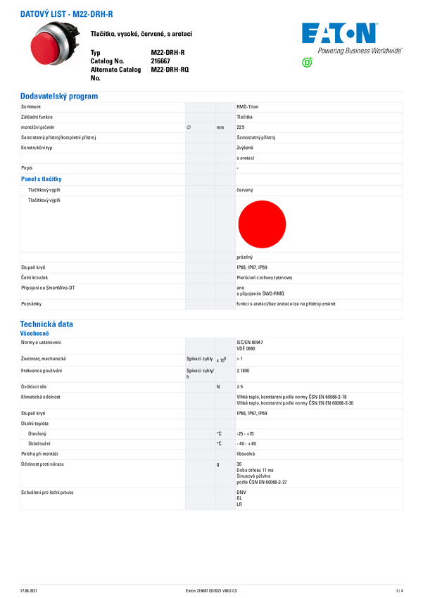 Eaton 216667 M22-DRH-R Przycisk pierścień przedni z tworzywa sztucznego 1 szt.