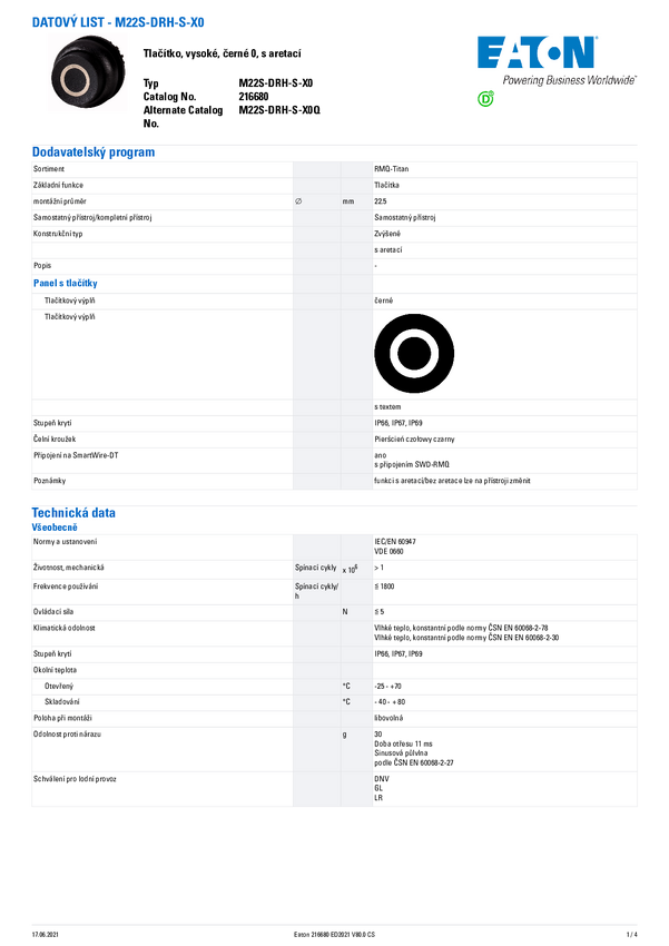 Eaton 216680 M22S-DRH-S-X0 Przycisk pierścień przedni z tworzywa sztucznego 1 szt.