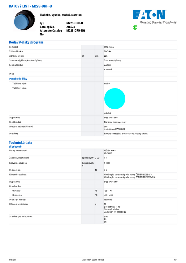 Eaton 216674 M22S-DRH-B Przycisk pierścień przedni z tworzywa sztucznego 1 szt.