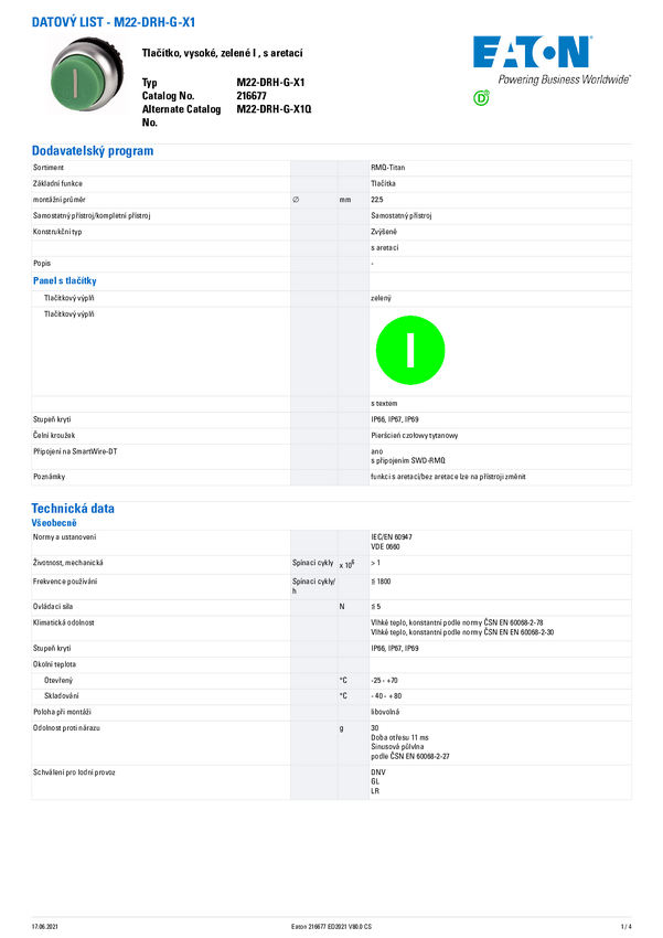 Eaton 216677 M22-DRH-G-X1 Przycisk pierścień przedni z tworzywa sztucznego 1 szt.