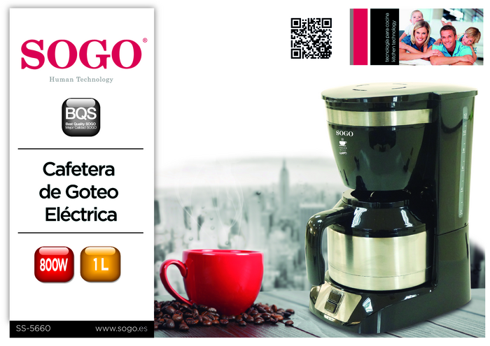 SOGO Human Technology Drip Inox 10 Ekspres do kawy czarny Pojemność (ilość kubków)=10 szklany dzbanek, Funkcja utrzymani