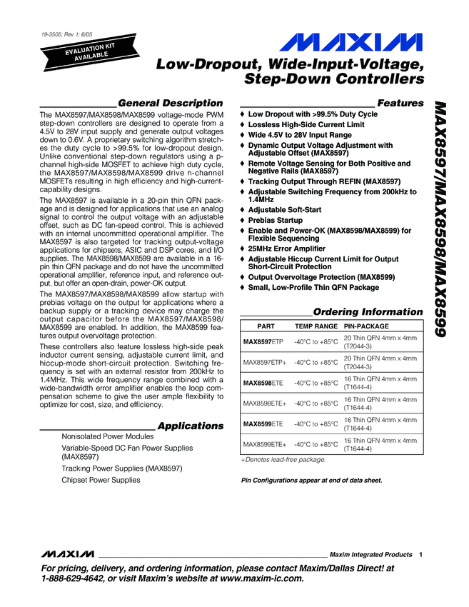 MAX8597, MAX8598, MAX8599 Low-Dropout, Wide-Input-Voltage, Step-Down Controllers