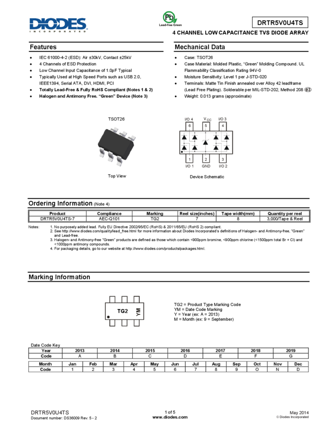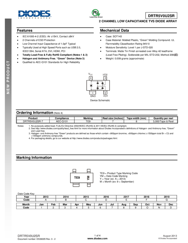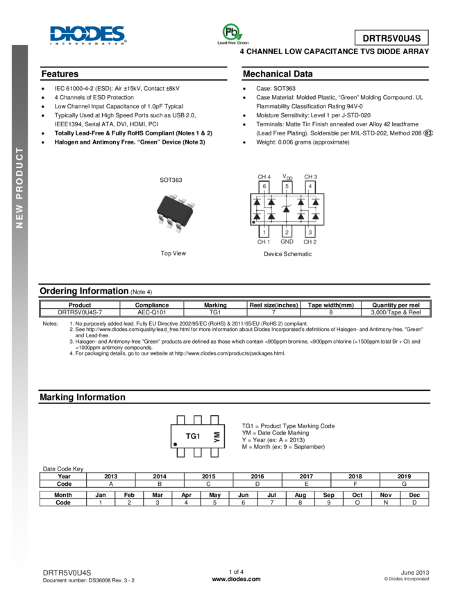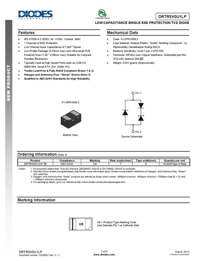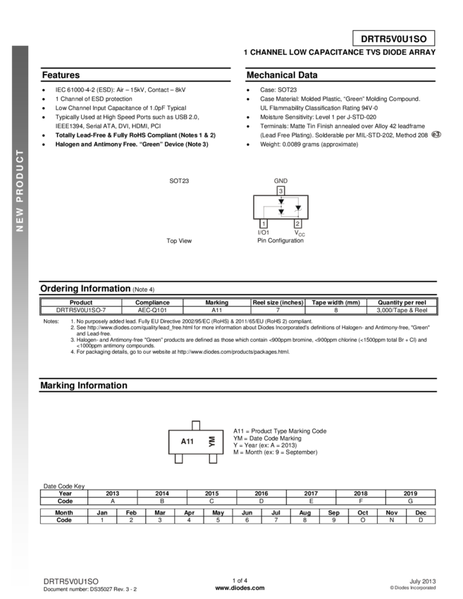 1 CHANNEL LOW CAPACITANCE TVS DIODE ARRAY