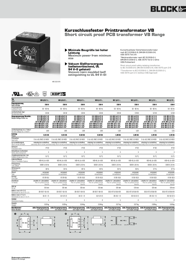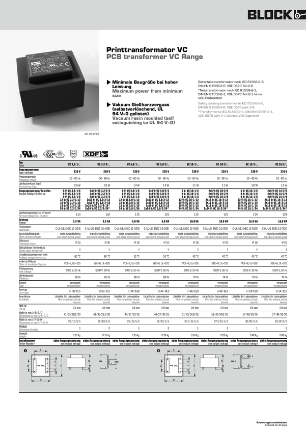 Transformator do płytki drukowanej Block VB 1,5/2/15