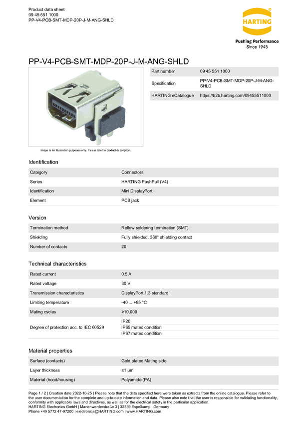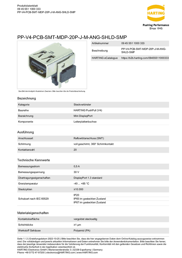 Harting 09455511000 Gniazdo płytki drukowanej 09 45 551 1000, piny: 20, 500 mA, 1 szt.
