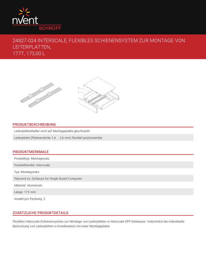 Montaż płytki drukowanej nVent SCHROFF 24827024 24827024, 1 szt.