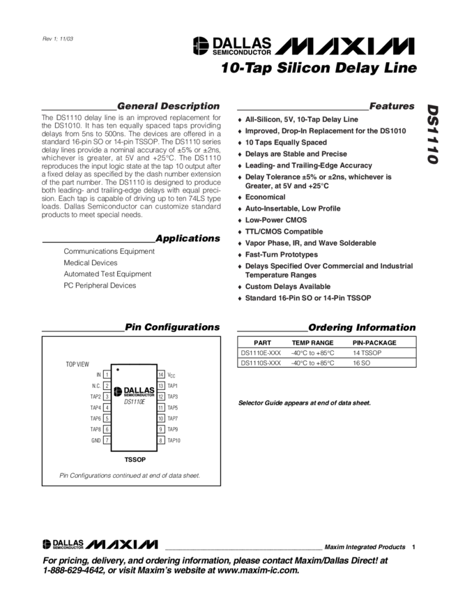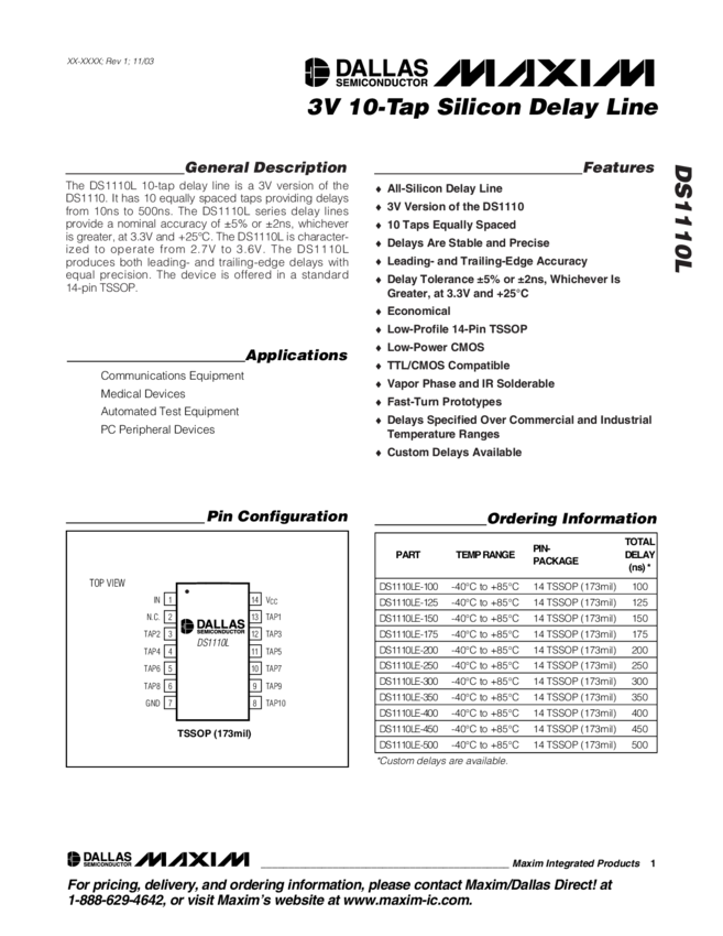 DS1100L 3-Volt 5-Tap Economy Timing Element (Delay Line)