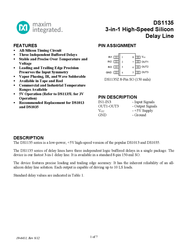 DS1135 3-in-1 High-Speed Silicon Delay Line