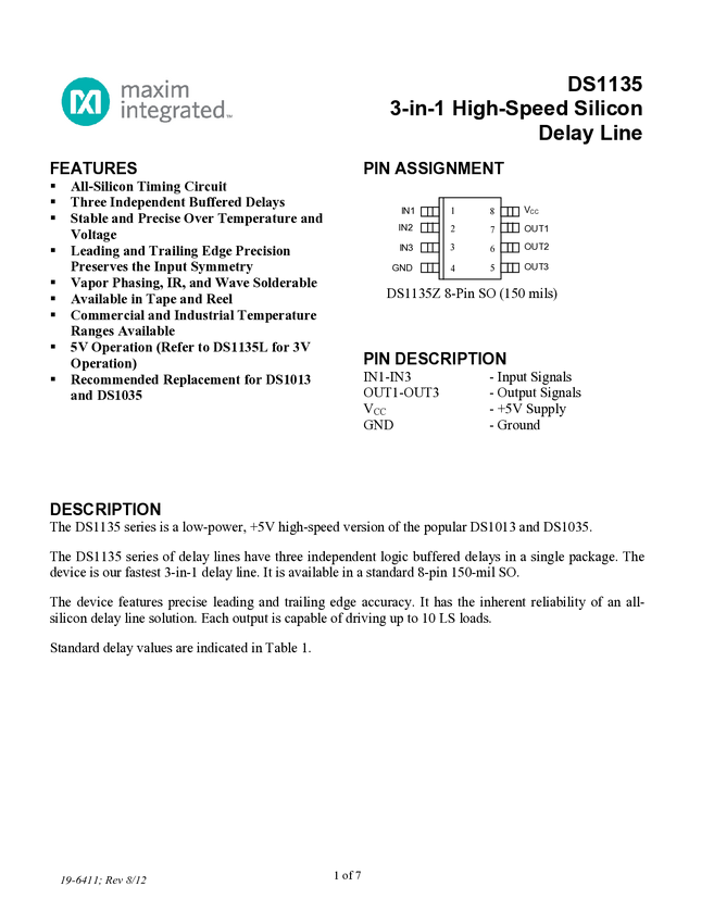 DS1135 3-in-1 High-Speed Silicon Delay Line