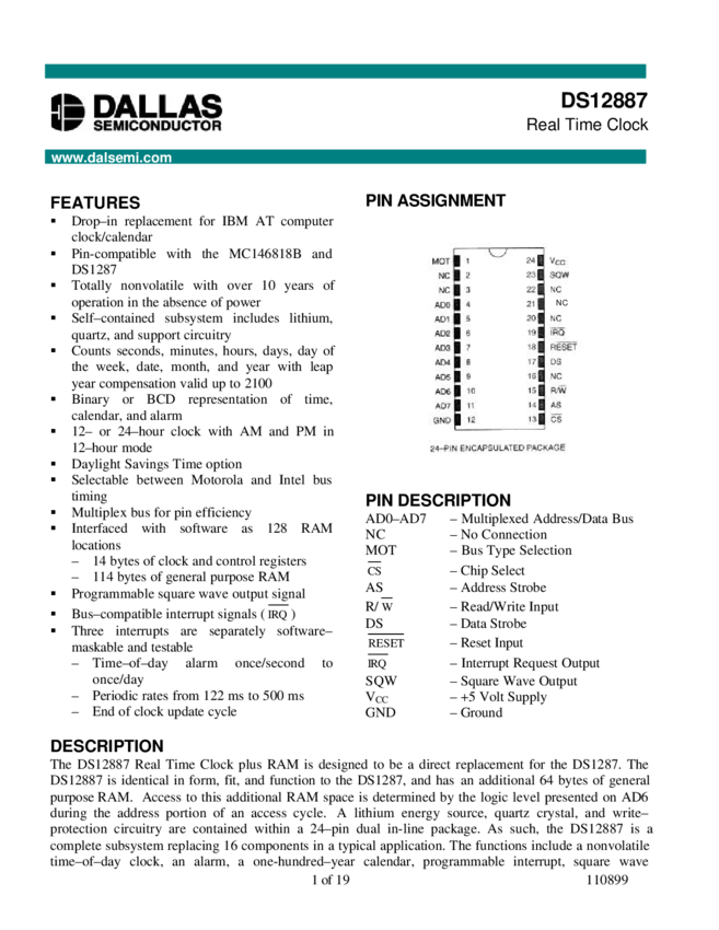 Nieprodukowane brak ścisłego zamiennika, Układy pin & function compatible: DS12887; lub podobne DS*12*887*