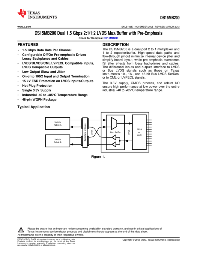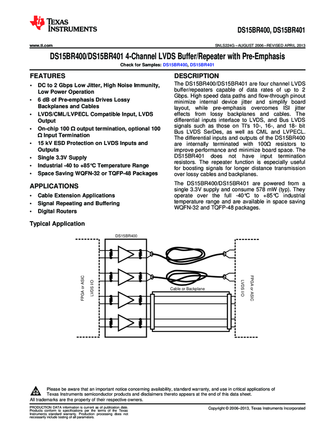 LVDS Repeater 0.5V 48-Pin LLP EP T/R