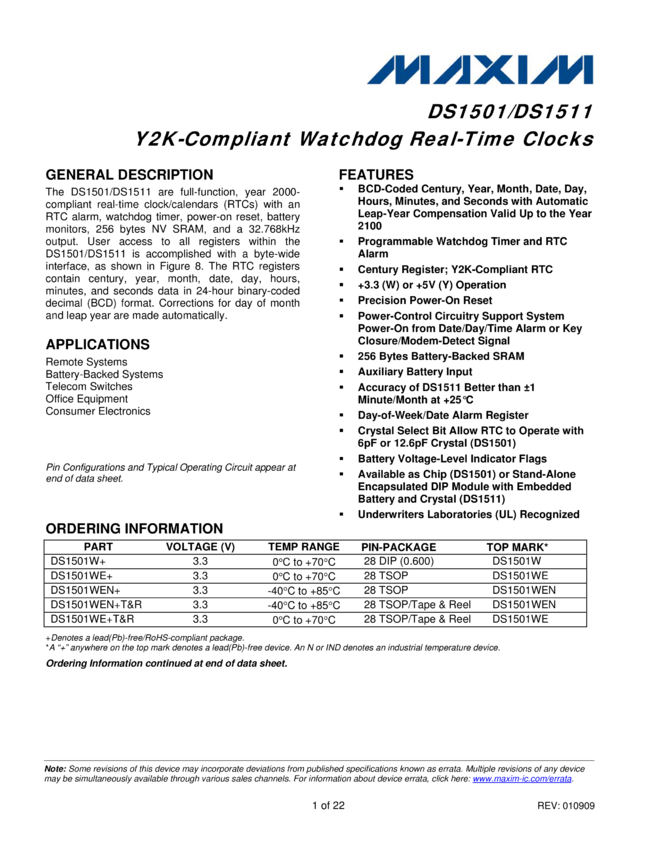 DS1501, DS1511 Y2K-Compliant Watchdog Real-Time Clocks