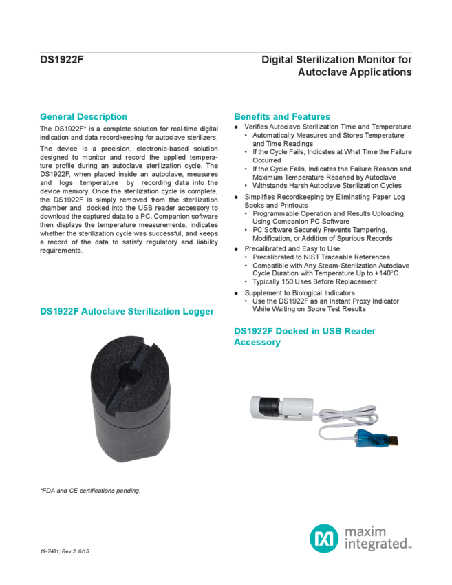 DS1922E High-Temperature Logger iButton® with 8KB Data-Log Memory