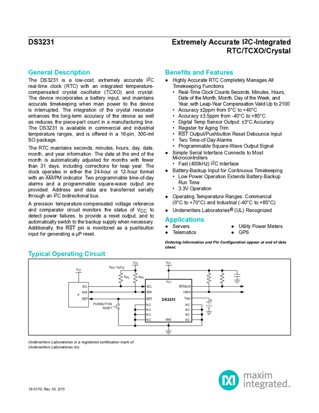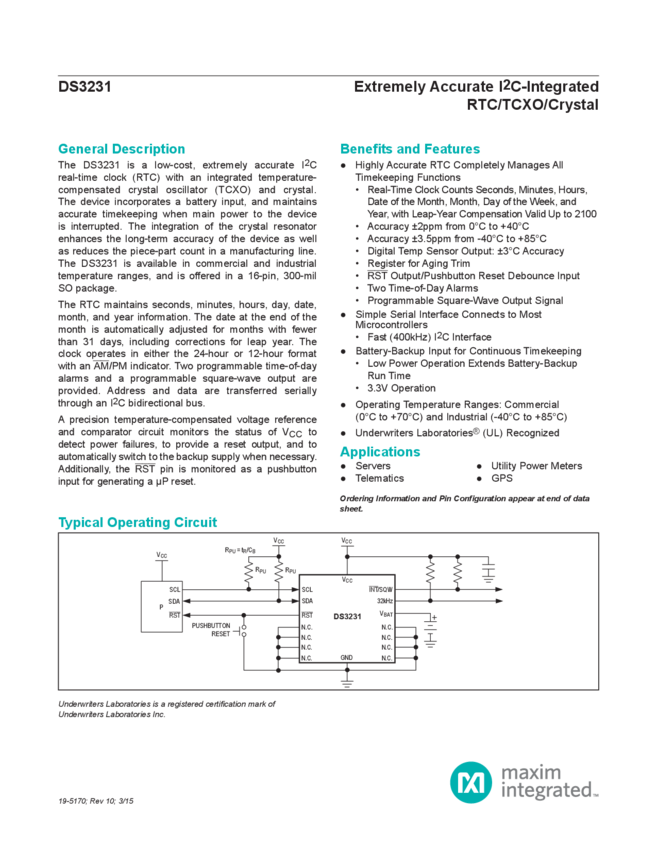 Extremely Accurate I²C-Integrated RTC/TCXO/Crystal