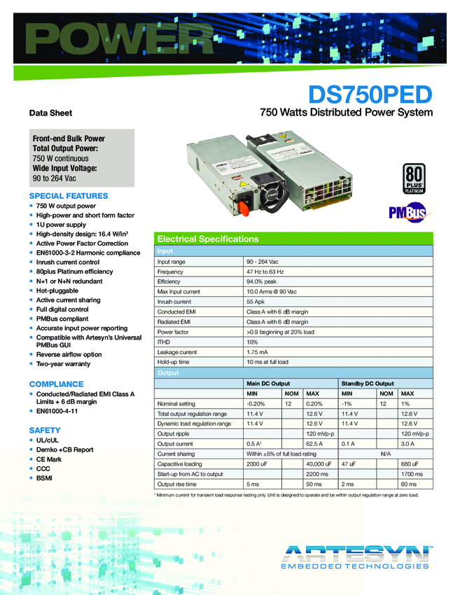 AC/DC Power Supply Dual-OUT 11.4V to 12.6V 62.5A 750W