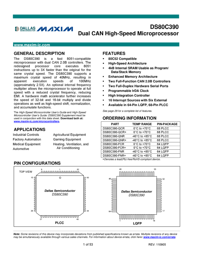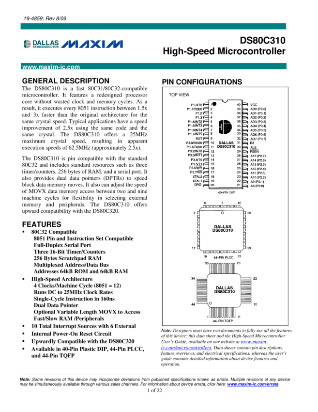 DS89C430, DS89C440, DS89C450 Ultra-High-Speed Flash Microcontrollers