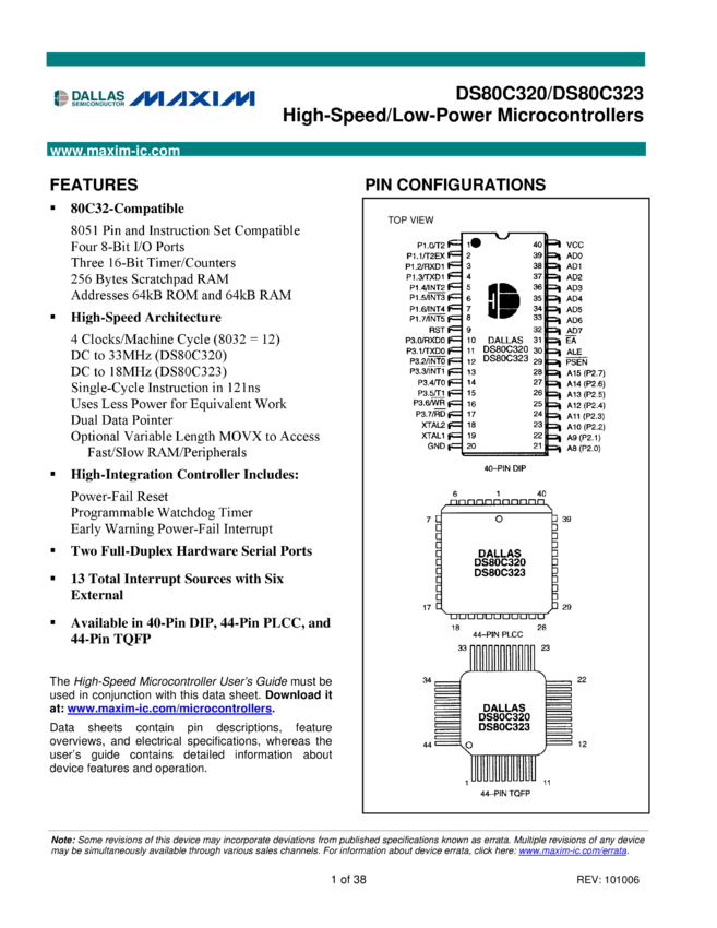 DS80C320, DS80C323 High-Speed/Low-Power Microcontrollers