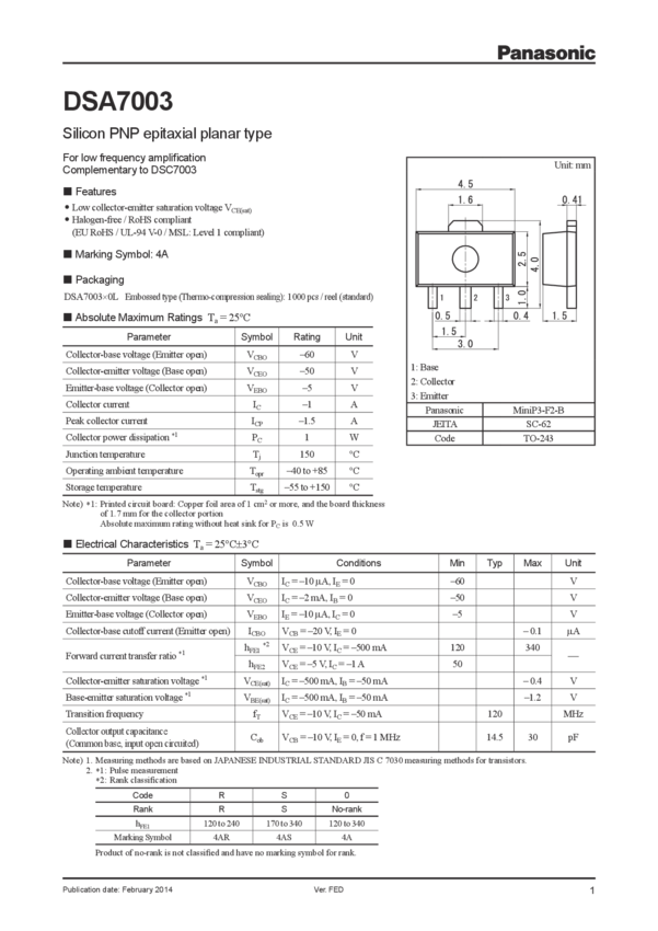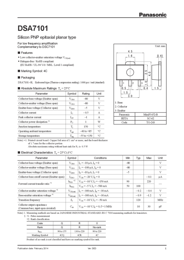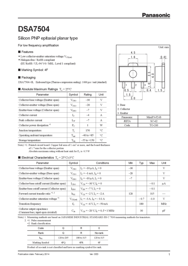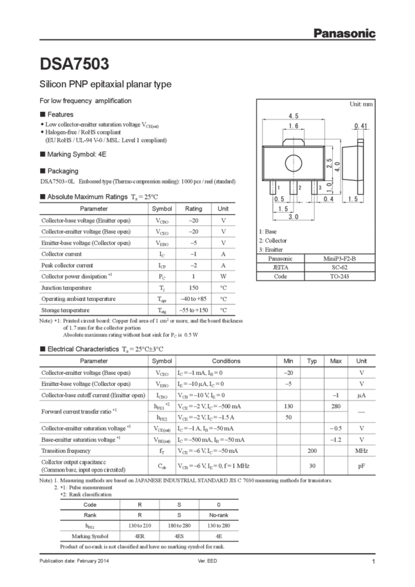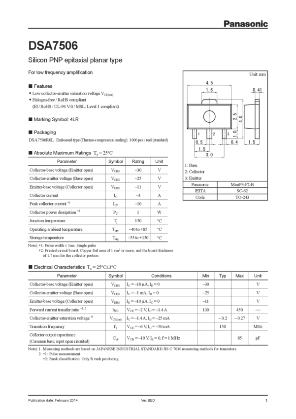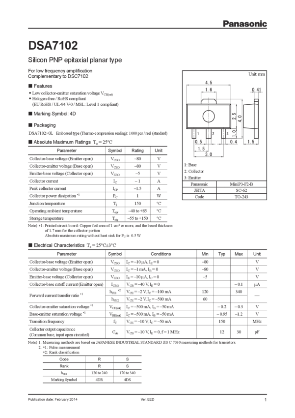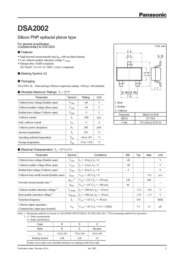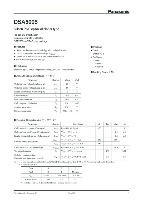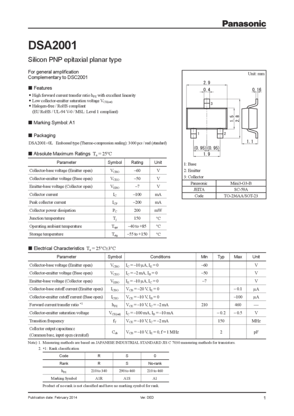 Small Signal Transistors (For Low-Frequency Amplifiers)