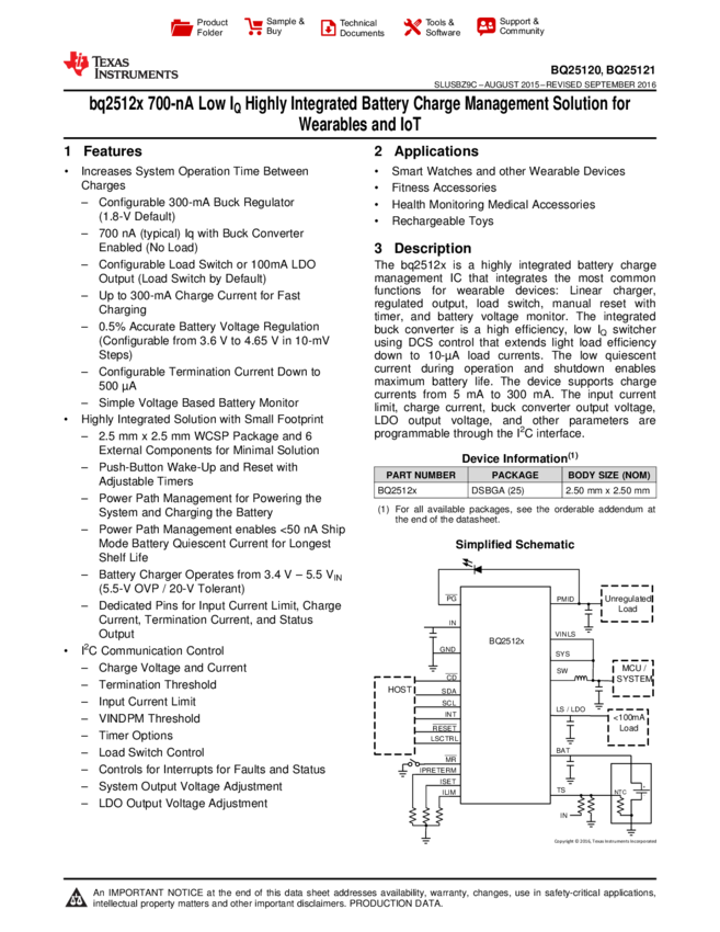 Battery Charger Li-Ion/Li-Pol 200mA 3.6V to 4.65V 25-Pin DSBGA T/R