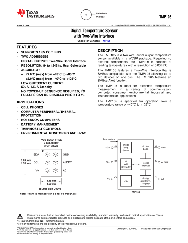 Temp Sensor Digital Serial (2-Wire) 6-Pin DSBGA T/R