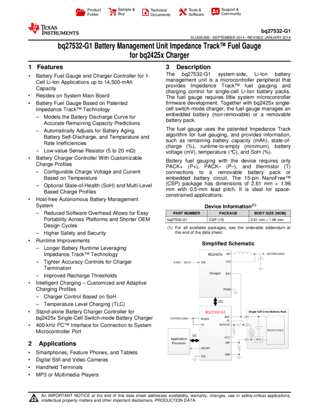 Battery Fuel Gauge Li-Ion 4.3V to 4.35V 15-Pin DSBGA T/R