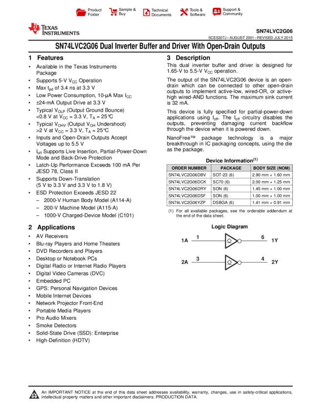 Buffer/Driver 2-CH Inverting Open Drain CMOS 6-Pin DSBGA T/R