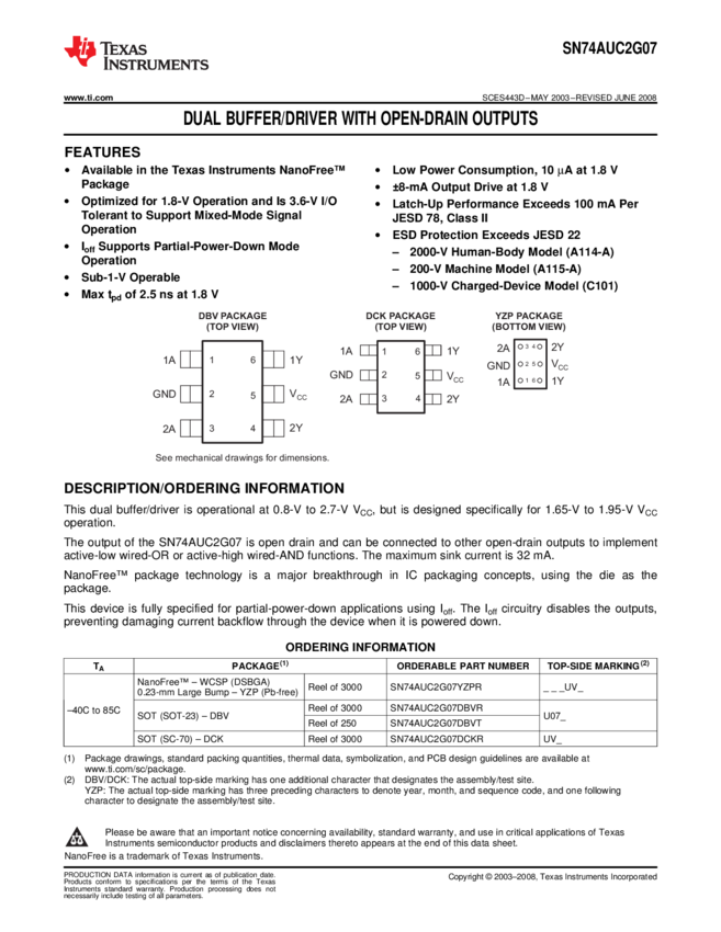 Buffer/Driver 2-CH Non-Inverting Open Drain CMOS 6-Pin DSBGA T/R