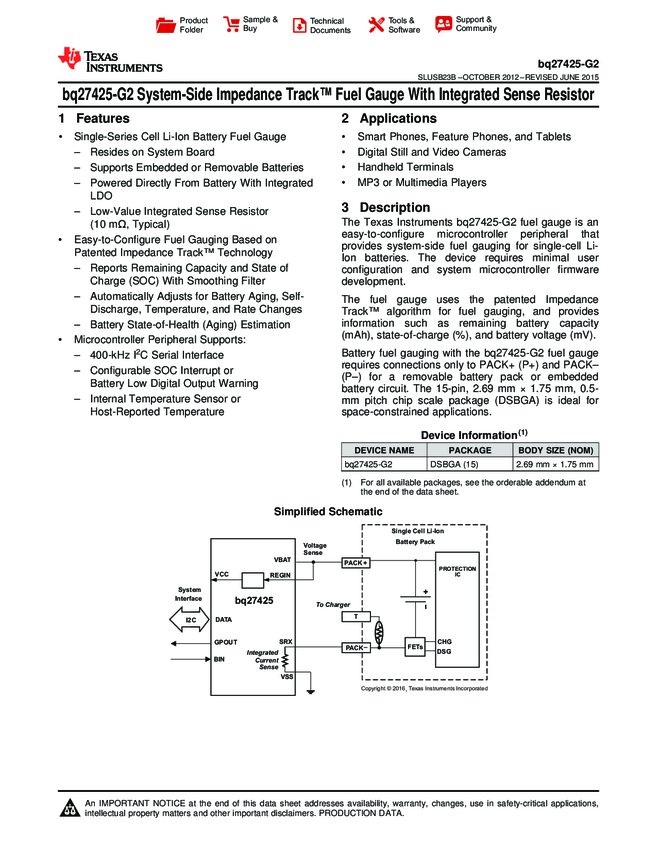 Battery Fuel Gauge Li-Ion 15-Pin DSBGA T/R