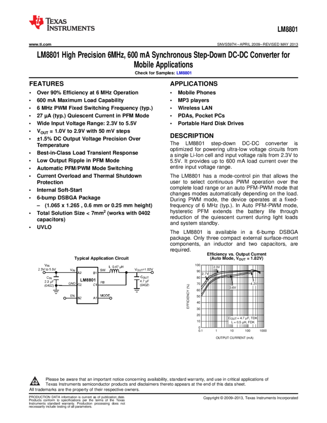 Conv DC-DC Single Step Down 2.3V to 5.5V 6-Pin DSBGA T/R