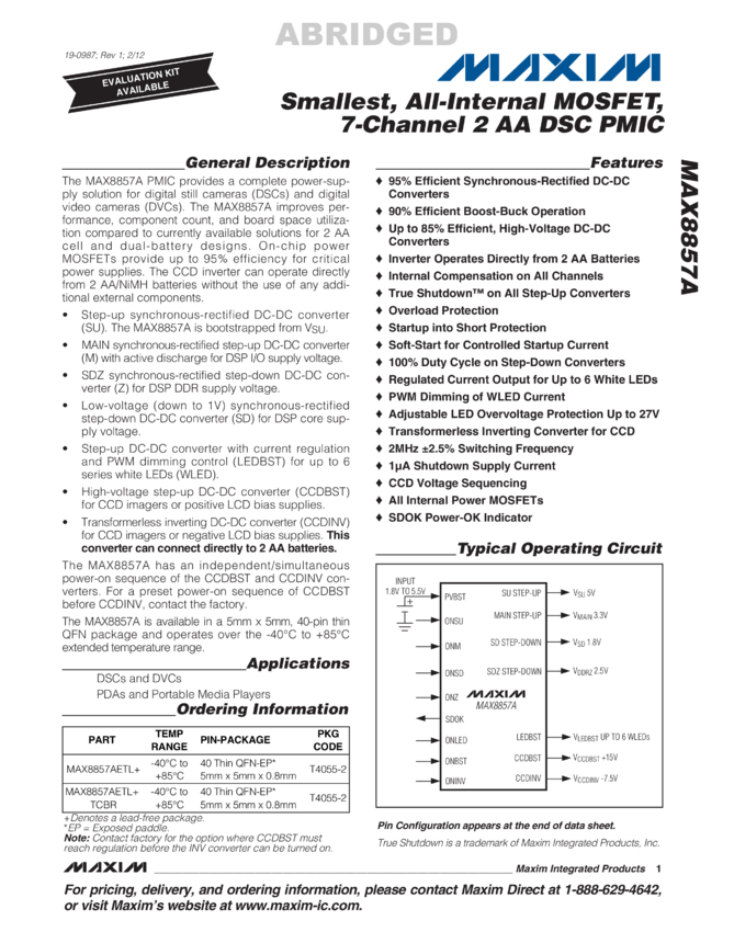 MAX8857A Smallest, All-Internal MOSFET, 7-Channel 2 AA DSC PMIC