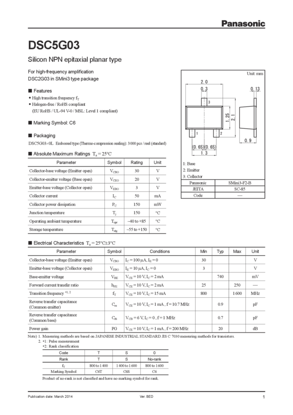 Small Signal Transistors (For Low-Frequency Amplifiers)