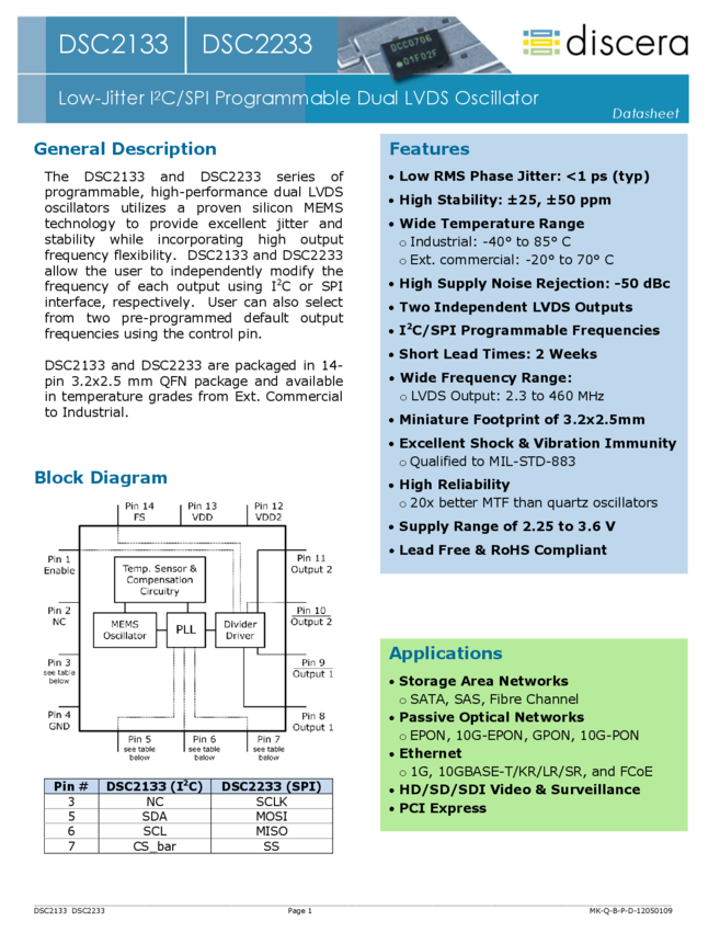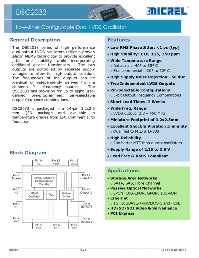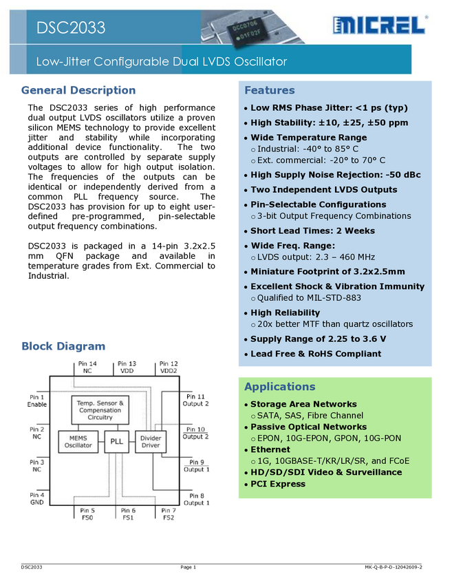 DSC2033 - Low-Jitter Configurable Dual LVDS Oscillator