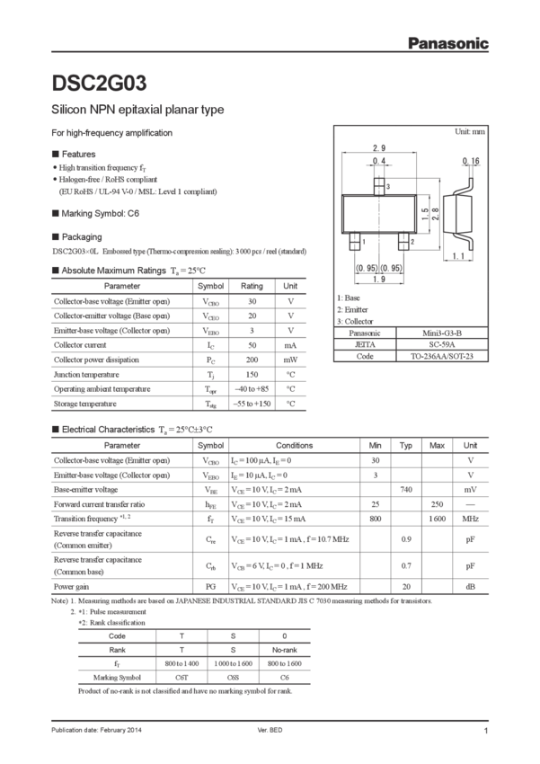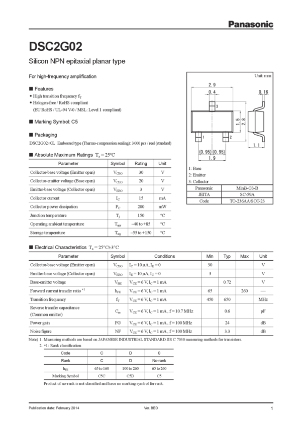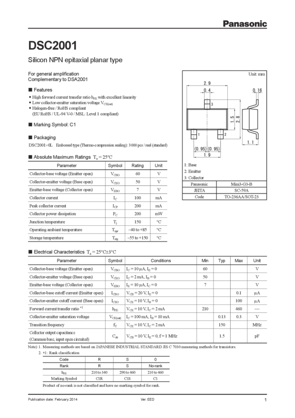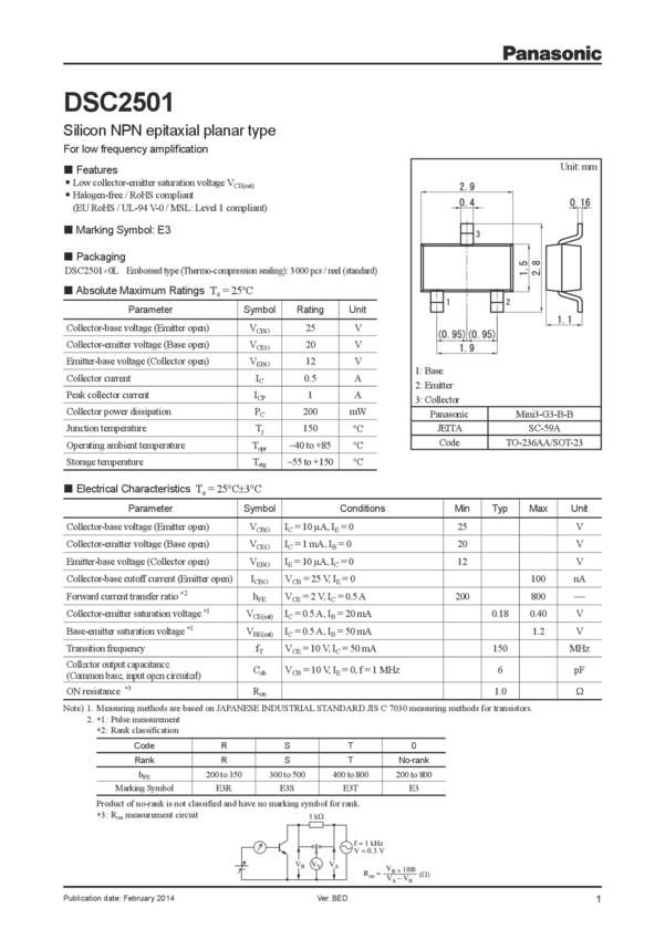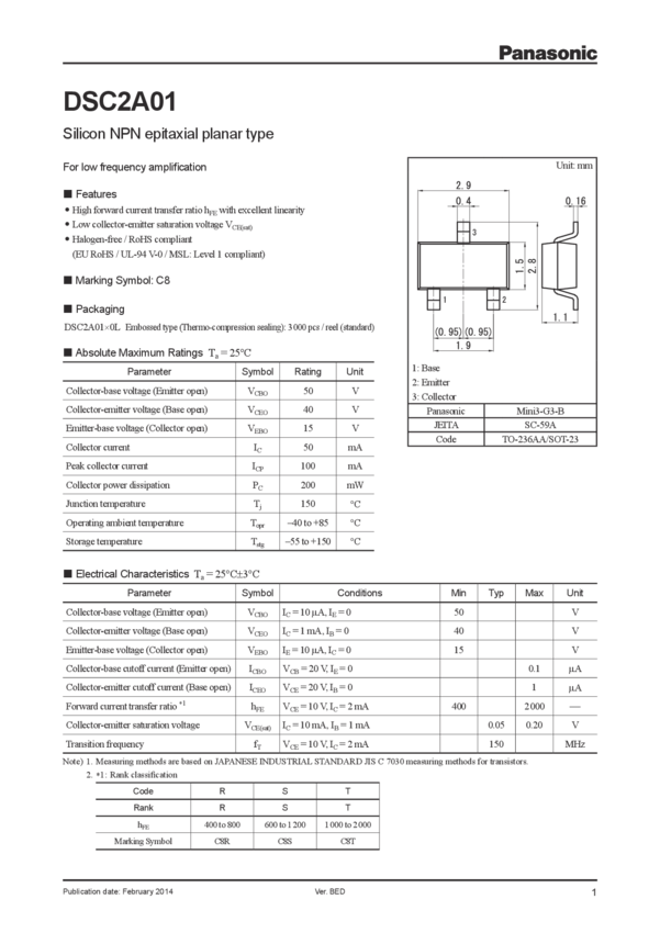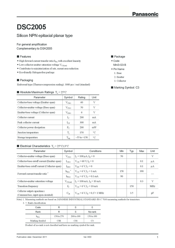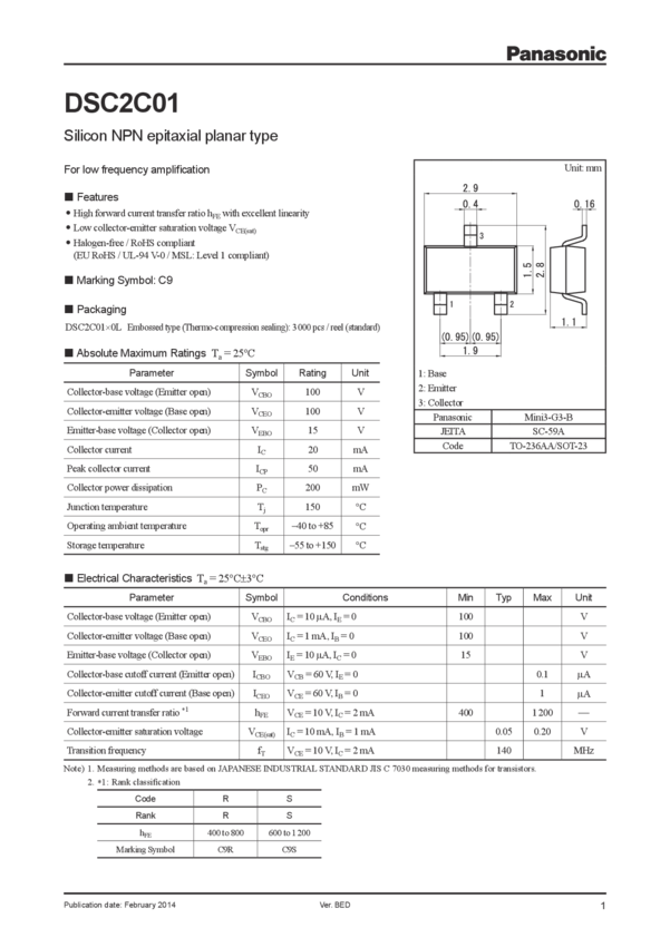 Small Signal Transistors (For Low-Frequency Amplifiers)