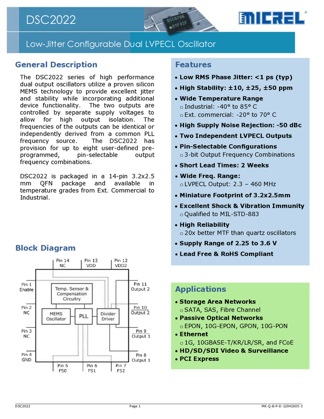 DSC2022 - Low-Jitter Configurable Dual LVPECL Oscillator