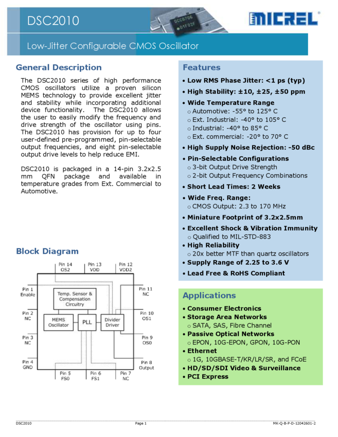 DSC2010 Data Sheet MKQBPD12042601-2 (09/18/2015)