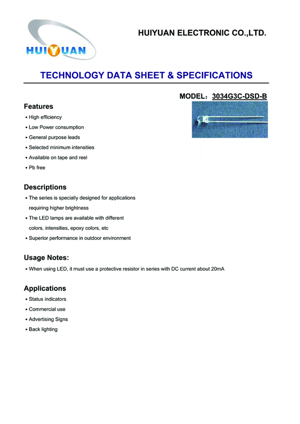 HuiYuan 3034R1C-DSD-E Dioda LED THT czerwony okrągły 3 mm 4000 mcd 40 ° 20 mA