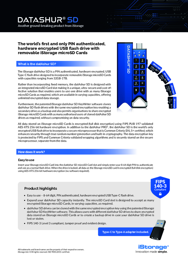 iStorage IS-FL-DSD-256-SP Czytnik kart pamięci, zewnętrzny 0 GB niebieski IS-FL-DSD-256-SP USB-C® 3.2