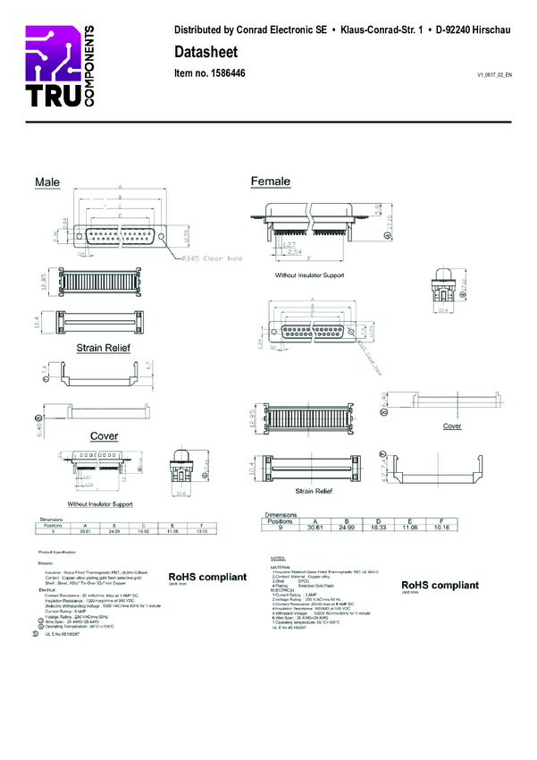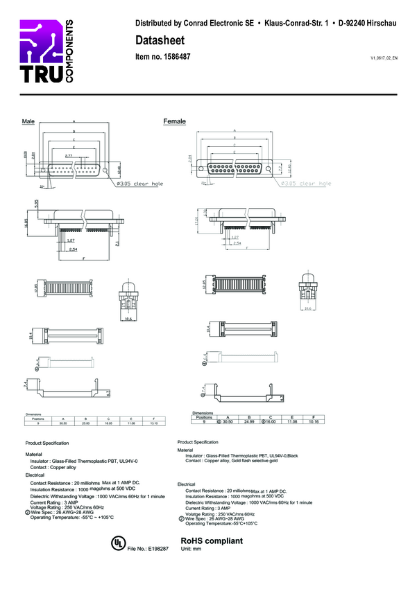 TRU COMPONENTS 1586446 Listwa męska D-Sub TC-A-DSF 09 LPIII/Z-203, styki: 9, 1 szt.