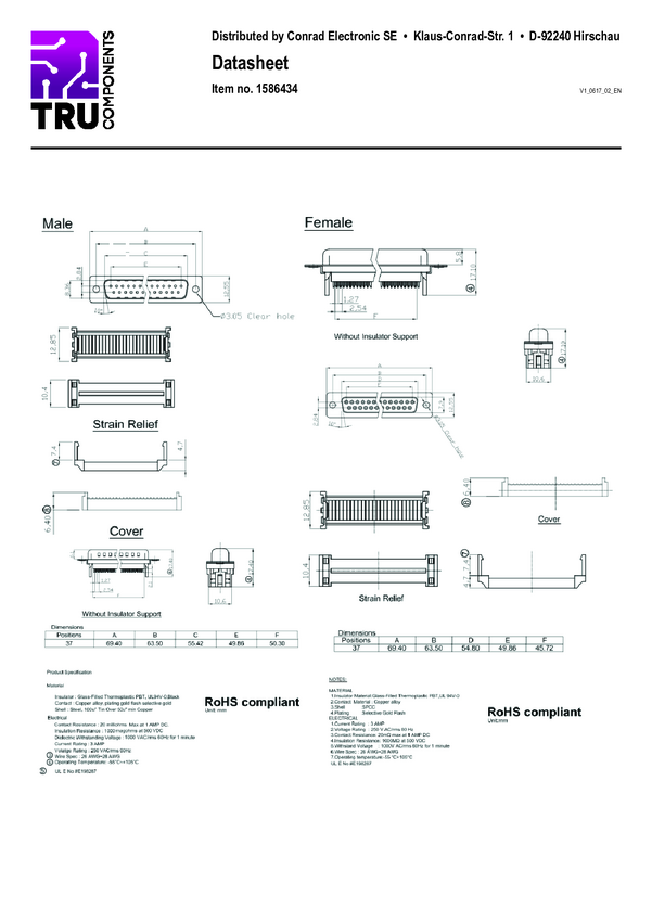 TRU COMPONENTS 1586434 Listwa męska D-Sub TC-A-DSF 37 LPIII/Z-203, styki: 37, 1 szt.