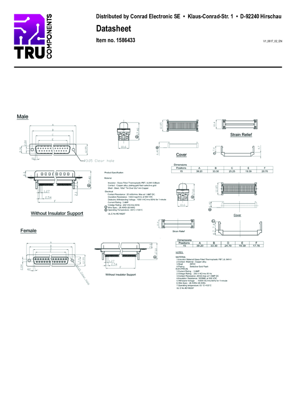 TRU COMPONENTS 1586433 Listwa męska D-Sub TC-A-DSF 15 LPIII/Z-203, styki: 15, 1 szt.