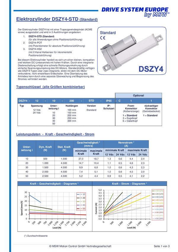 Siłowniki liniowe prądu stałego DSZY4-12-50-300-IP65
