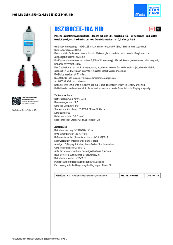 Eltako DSZ180CEE-16A MID 28016128 Licznik prądu trójfazowy cyfrowy 10 A 1 szt.